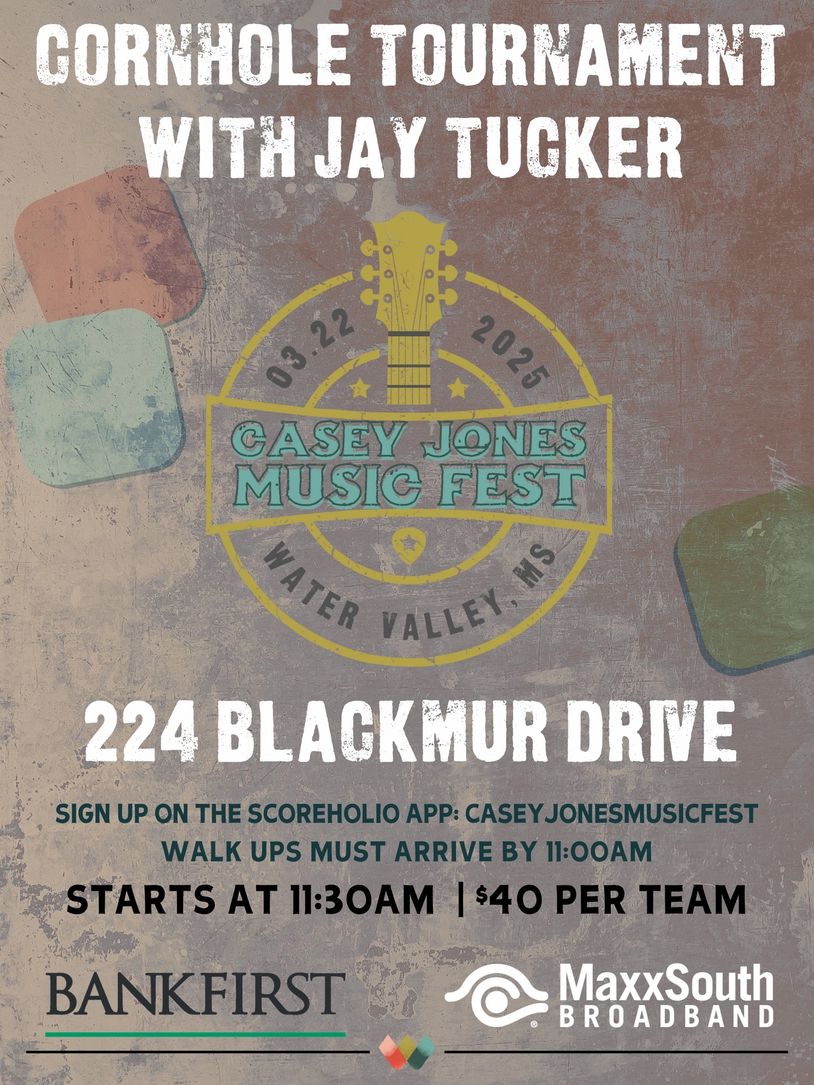 Join us at 11AM, the morning of the festival for our annual cornhole tournament! To sign up, download the Scoreholio App & use code CaseyJonesMusicFest to register. The cost is $40 per team, located at the Courthouse Commons Shopping Center at 224 Blackmur Dr.